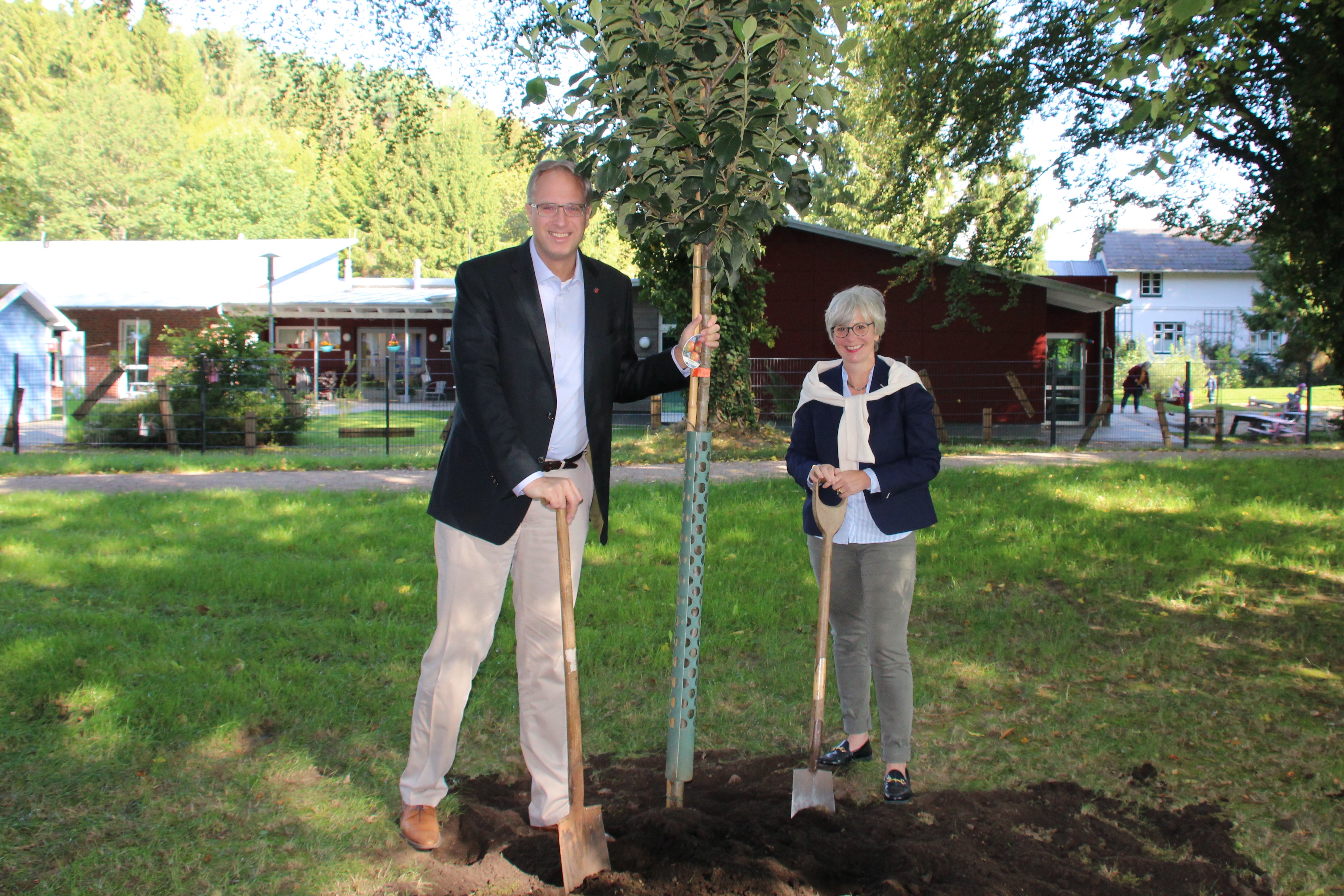 Tobias Koch, Landtagsabgeordneter aus Ahrensburg und Ulrike Stentzler, Bürgermeisterin von Lütjensee, haben am Montag, dem 02.09.2019 im Rahmen der Aktion „Einheitsbuddeln“ einen Baum in der Gemeinde Lütjensee gepflanzt.