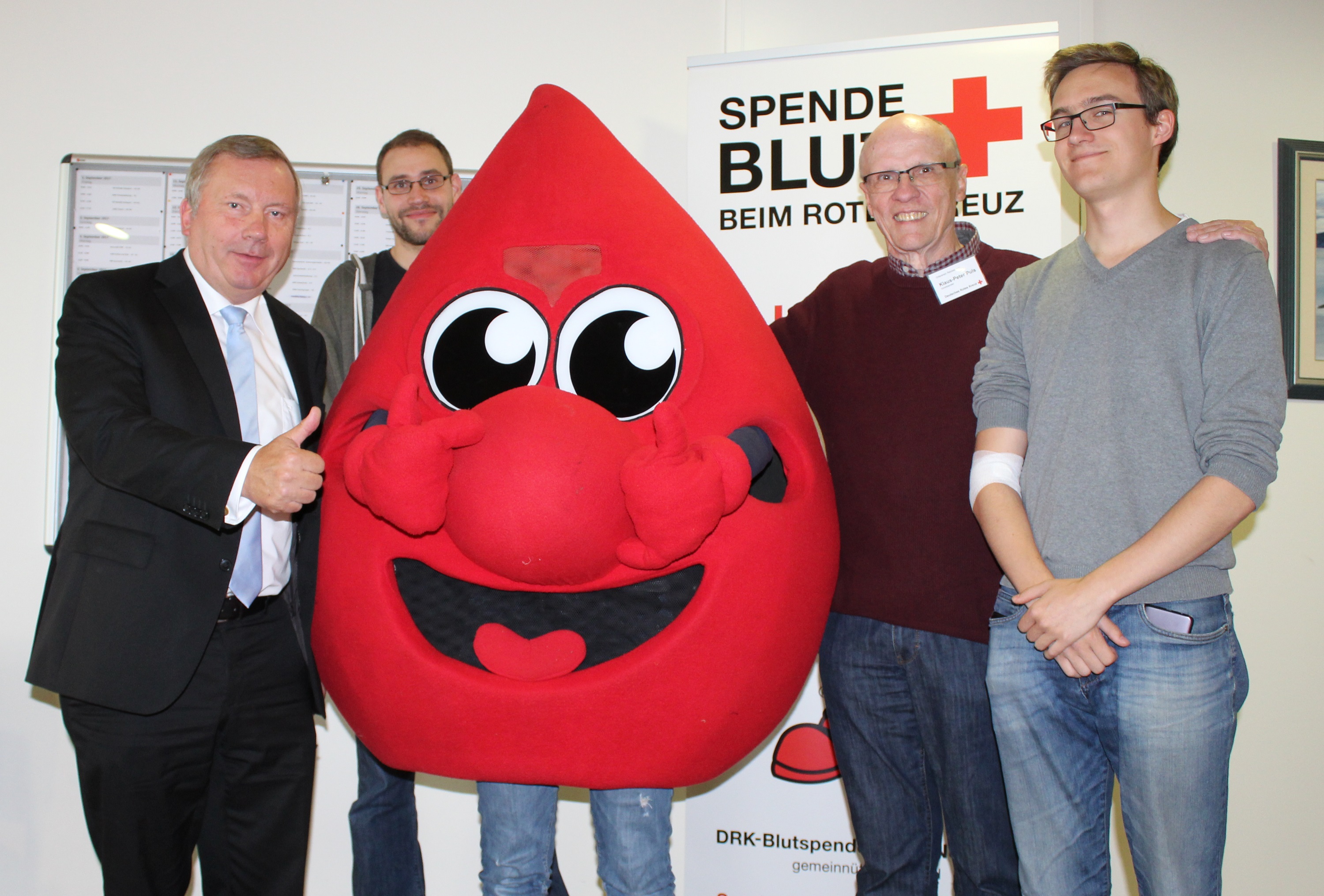 Am ersten der zwei Blutspendenachmittage stand um 15.30 Uhr auch TRÖPFLI bereit. Das Maskottchen des DRK-Blutspendedienstes erwartete den CDU-Bundestagsabgeordneten aus dem Wahlkreis  Herzogtum Lauenburg – Stormarn Süd, Norbert Brackmann, zu seiner Blutspende. Die Abläufe einer Blutspende – von der Spenderanmeldung über die Messung von Hämoglobinwert und Körpertemperatur, sowie die kurze ärztliche Untersuchung bis zur Blutentnahme, kennt der gebürtige Lauenburger genau. Denn er spendet nicht nur in seiner Heimat Blut, sondern nimmt auch die DRK-Spendeaktionen vor dem Reichstag in Berlin regelmäßig wahr. Sieben Minuten und 20 Sekunden dauerte es in Reinbek, bis ein halber Liter von Brackmanns Blut in das Beutelsystem auf der neben ihm stehenden Blutmischwaage gelaufen war. „Mir ist es wichtig, mit meinem Einsatz Solidarität mit den Patienten in der Region zu zeigen“ begründete der Politiker sein Engagement. Außerdem  wolle er auch andere Menschen von der Wichtigkeit des Blutspendens überzeugen. Das ist ihm in seiner Heimat auch gelungen: seinen Kreisgeschäftsführer Alexander Schröter und dessen Mitarbeiter Nils Warnick hatte er als Erstspender gleich mitgebracht.